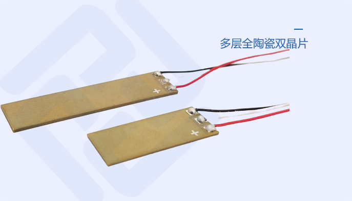 采用全陶瓷设计取代传统双晶片,陶瓷+金属(聚合物/碳纤维)+陶瓷,的结构设计,使得其出力远大于普通双晶片。双晶片具有双层设计,施加电压时,其中一层收缩,另一层膨胀,于是产生变形。这些双晶片通过流延和共烧技术制造,可靠性高,非常适合 光学斩波器、弯管机以及泵浦和计量应用。