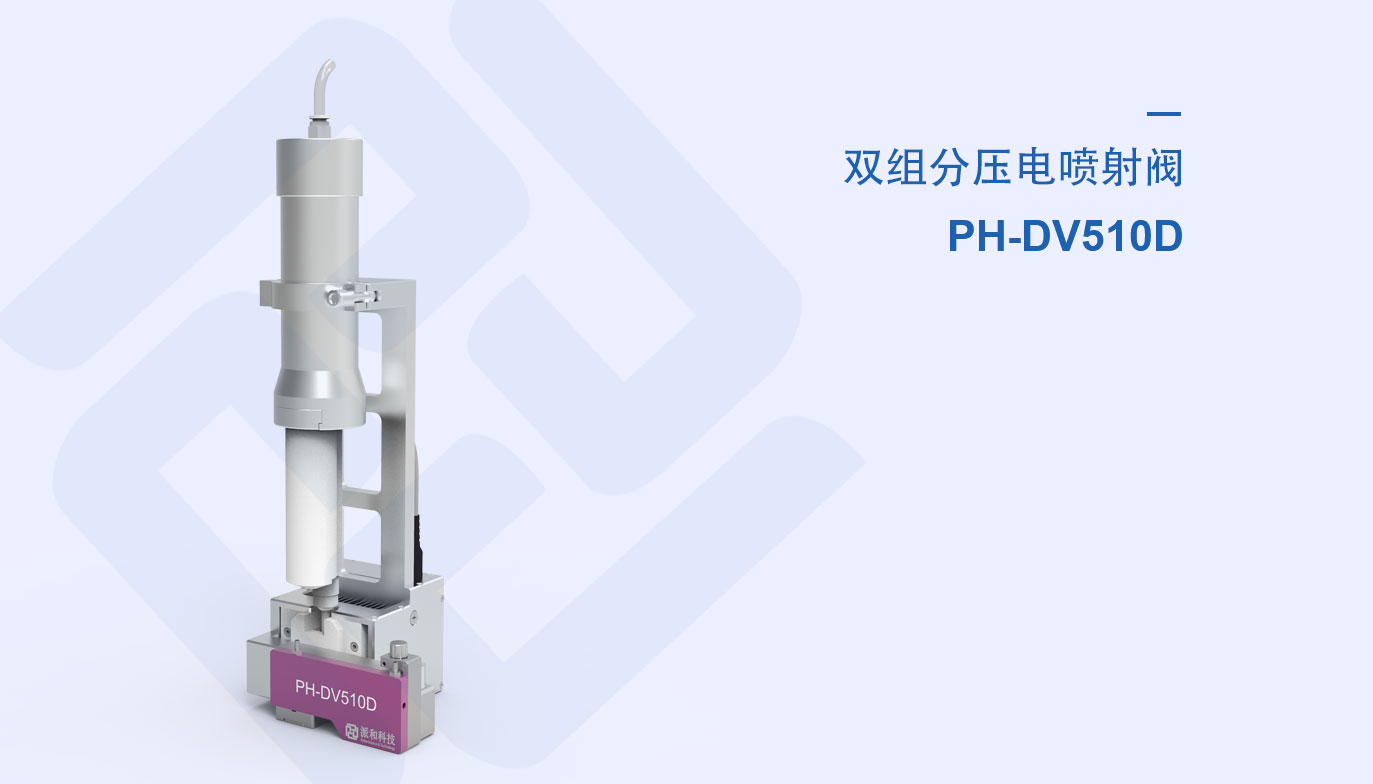 PH-DV510D系列双组分压电喷射阀,利用压电陶瓷做为驱动源,实现高频率的非接触式双组分液滴喷射,并通过制冷组件有效延缓混合胶液固化时间,喷射状态高效稳定,可实现混合后粘度0 ~ 200000cps的胶液喷射。应用于电子3C封装,新能源电池填充等技术领域的关键工艺环节。